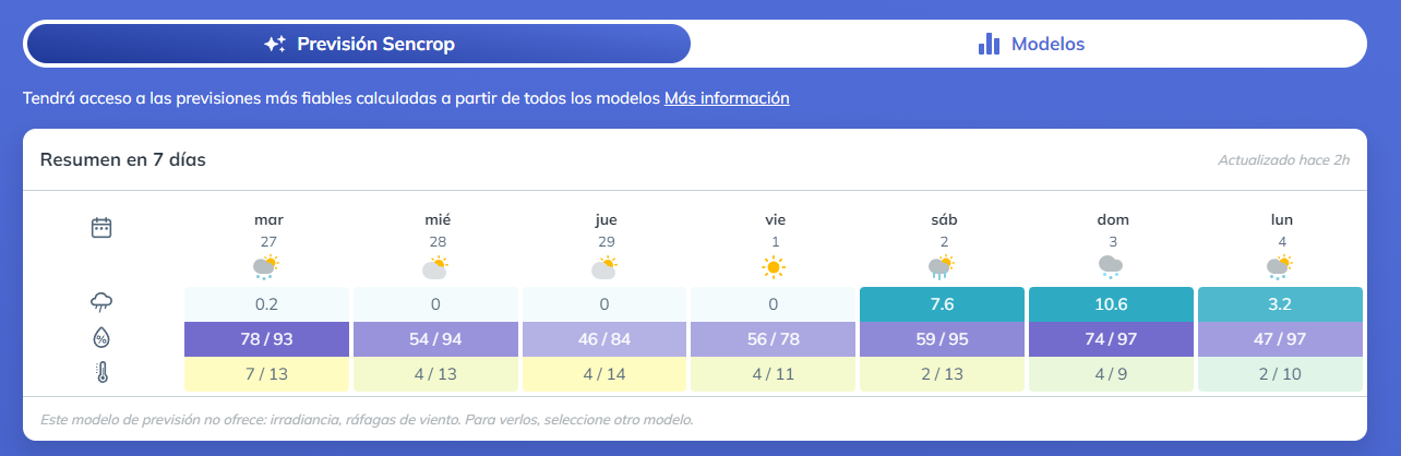 Previsiones Sencrop
