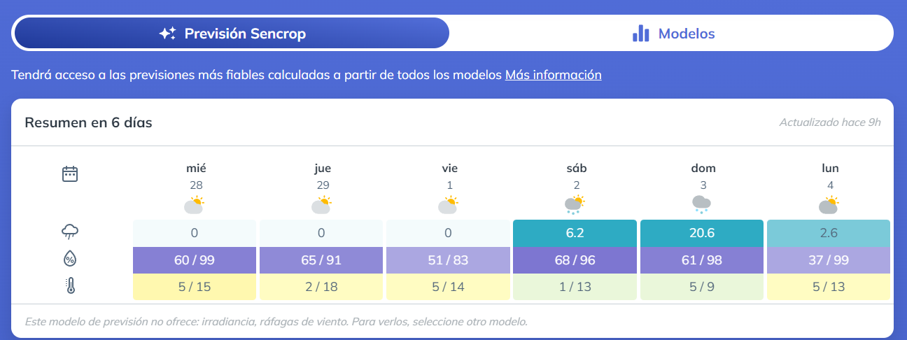 Previsiones de Sencrop